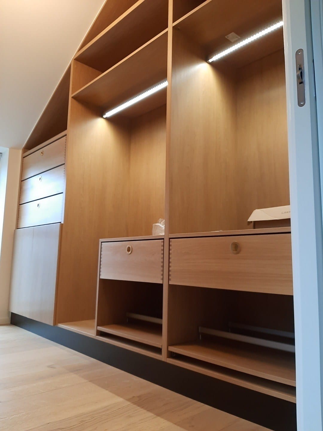 Vi sørger for et walk in closet, som designmæssigt passer til indretning og æstetik i din bolig, hvilket betyder, at du får du en unik og tilpasset løsning.