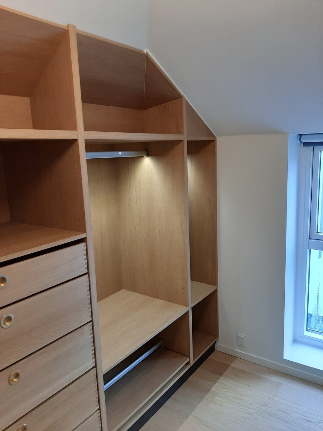 Det skal nemlig være let både at få fat i sit tøj og komme af med det igen, når man kommer hjem. Om det for dig er ideelt i entréen, et bryggers eller i et værelse, om der skal tages hensyn til en skunk, skråvægge eller skæve vinkler, så sørger vi for den garderobe, som er bedst for dig.